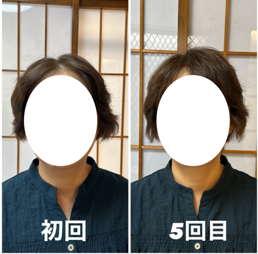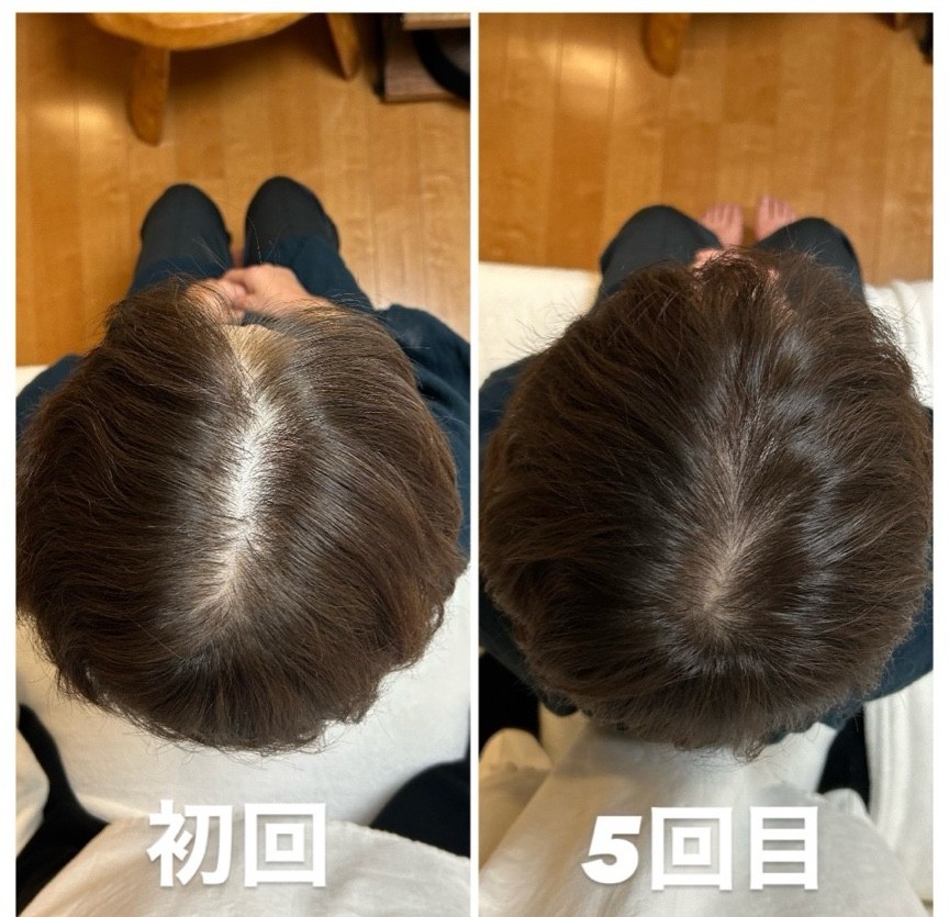 その結果、髪にハリ・コシ・まとまりが出てきただけでなく分け目から見える地肌の印象にもはっきりとした変化が見られました。